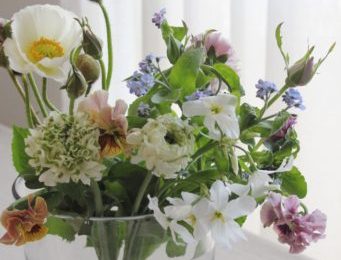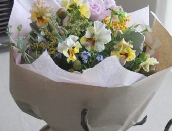 なんとも優しげなニュアンスの花束です。こういうニュアンス、見ているだけで気持ちが穏やかにホンワカしてきます。お誕生日のお祝いにお作りさせていただきました。 「お花はお任せしますー」というご希望の時は、ご注文主様からお伺いしたイメージさえ合えば、ですが、その時期にしかない季節の花を私はま…