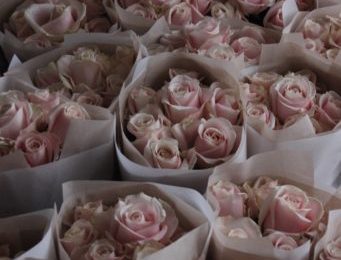 どちらもバラです。奥のピンクと手前のピンク、ピンクはピンクでもその色の持ち味は全く違っています。 どちらのバラもお客様のオーダーメールをお読みして「こちらのお客様はきっとこういう色のバラ、こちらのお客様はこういう色のバラ」と私が勝手にイメージしてお選び差し上げたそれぞれ様へのピンク色バ…